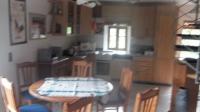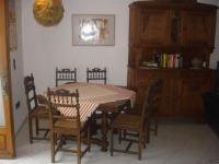 Im Erdgeschoß befindet sich eine Küchenzeile, eine Essgelegenheit für sechs Personen, sowie ein abgetrenntes Wohnzimmer mit einer großen Ledercouch.